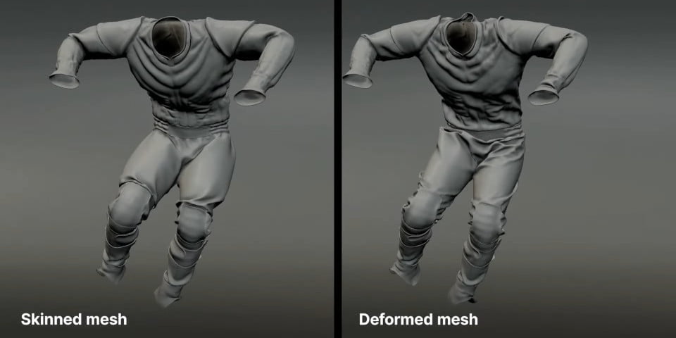 مدل هوش مصنوعی ساخته شده برای این دمو، تغییر شکل پارچهها را شبیهسازی میکند که در ابتدا با استفاده از دادههای آموزشی تولید شده از شبیهسازیهای آفلاین ایجاد شده است. این مدل تنها 47MB فضای ذخیرهسازی را اشغال میکند و در 0.8 میلیثانیه برای هر فریم، تغییر شکلها را تولید میکند.